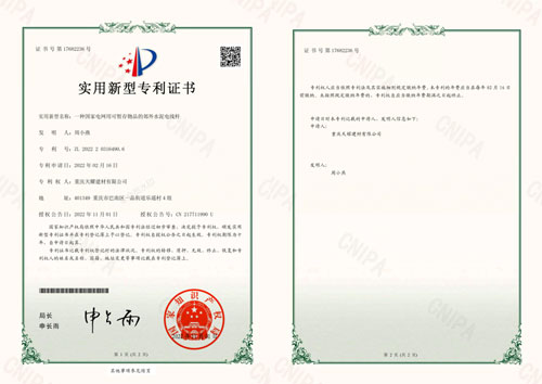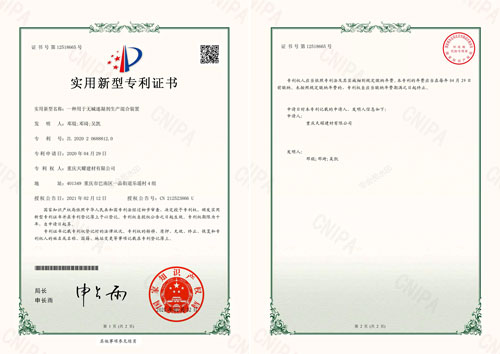 重慶天耀建材有限公司榮獲多項專利證明
